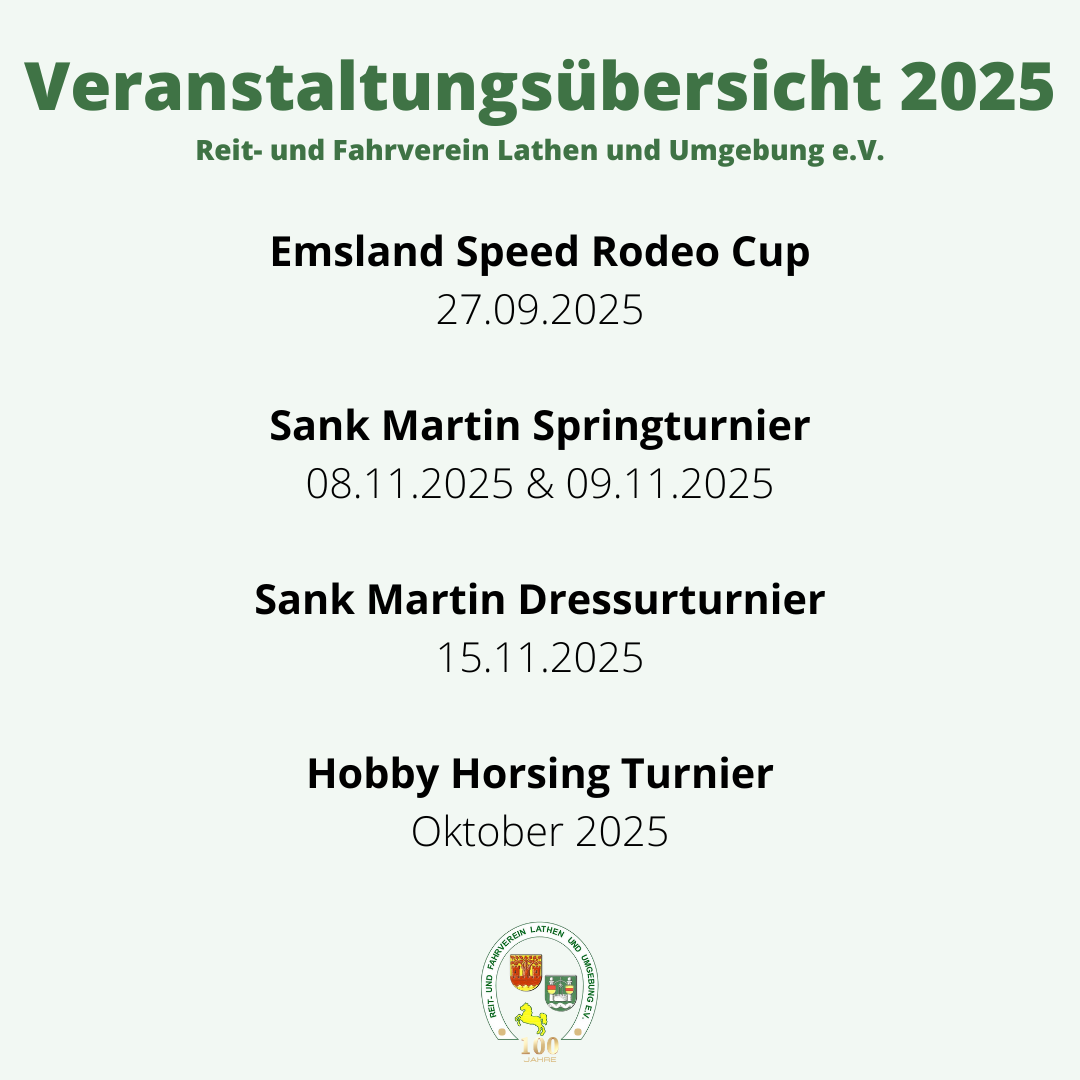 Wir haben euch kurz und bündig einmal die kommenden Veranstaltungen unseres Reitvereins zusammengestellt.