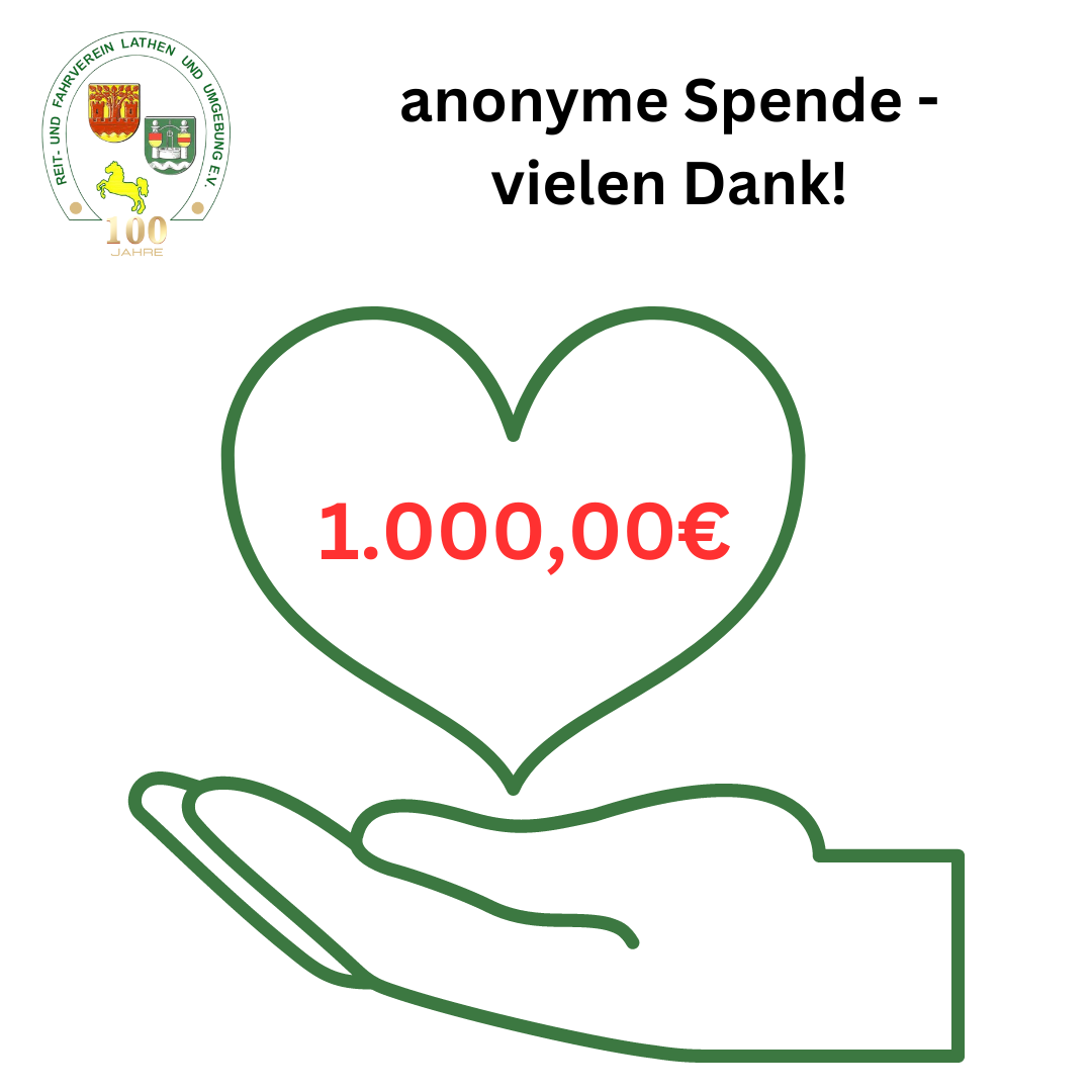 Durch eine anonyme Spende haben wir im April einen großartigen Betrag von sage und schreibe 1.000,00€ auf unser Vereinskonto überwiesen bekommen. An dieser Stelle möchte sich der Verein nochmal recht herzlich für diese großzügige Zuwendung bedanken!