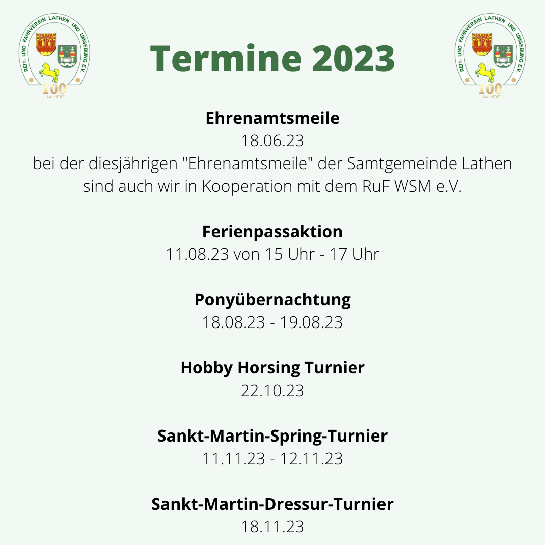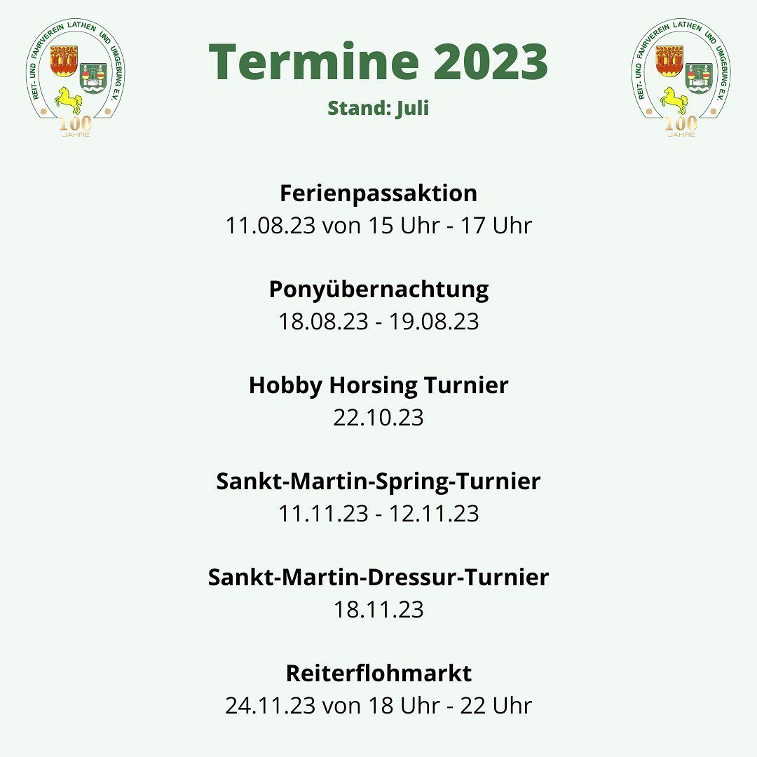Hier einmal die noch anstehenden Termine für das Jahr 2023 zum Eintragen in eure Kalender