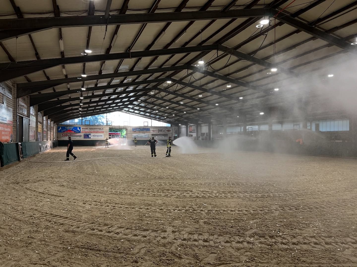 Heute Abend fand der regelmäßige Übungsabend der Freiwilligen Feuerwehr Lathen in der Johann Ehrens Reithalle statt. 30 freiwillige Kräfte haben hier ihre Übungen durchgeführt. Gleichzeitig wurde der neu aufgefahrene Sand in der Haupthalle während der Übung bewässert. Somit eine win-win Situation für beide Seiten. Vielen Dank an die Freiwillige Feuerwehr Lathen!
